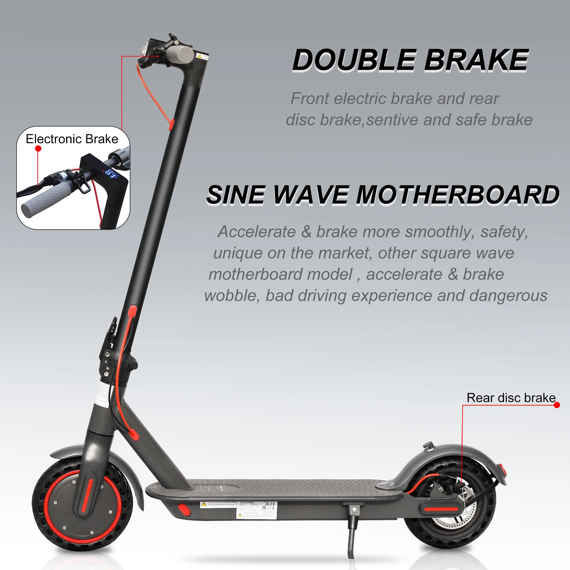 🛑 Dual Braking System: Front electric brake + rear disc brake for safe stopping.